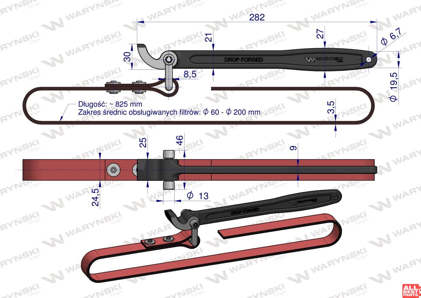 Klucz paskowy do filtra oleju srednica max 200 mm (skorz) Warynski
