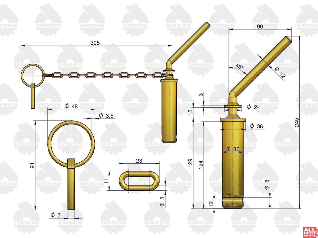 Sworzeń zaczepu górnego C-330 ORYGINAL URSUS