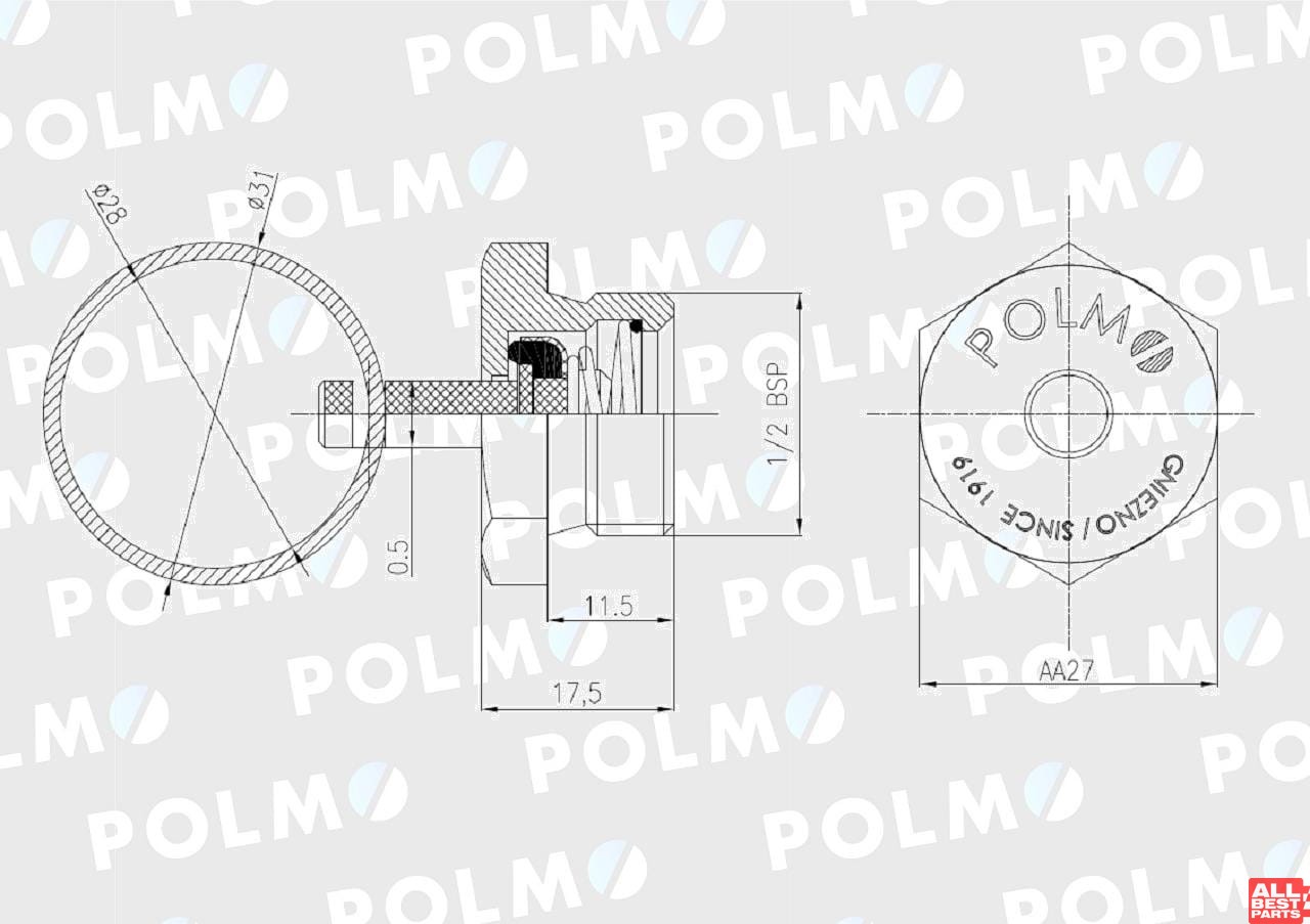 Zawór odwadniający zbiornika powietrza 1/2 BSP 1664505MP POLMO